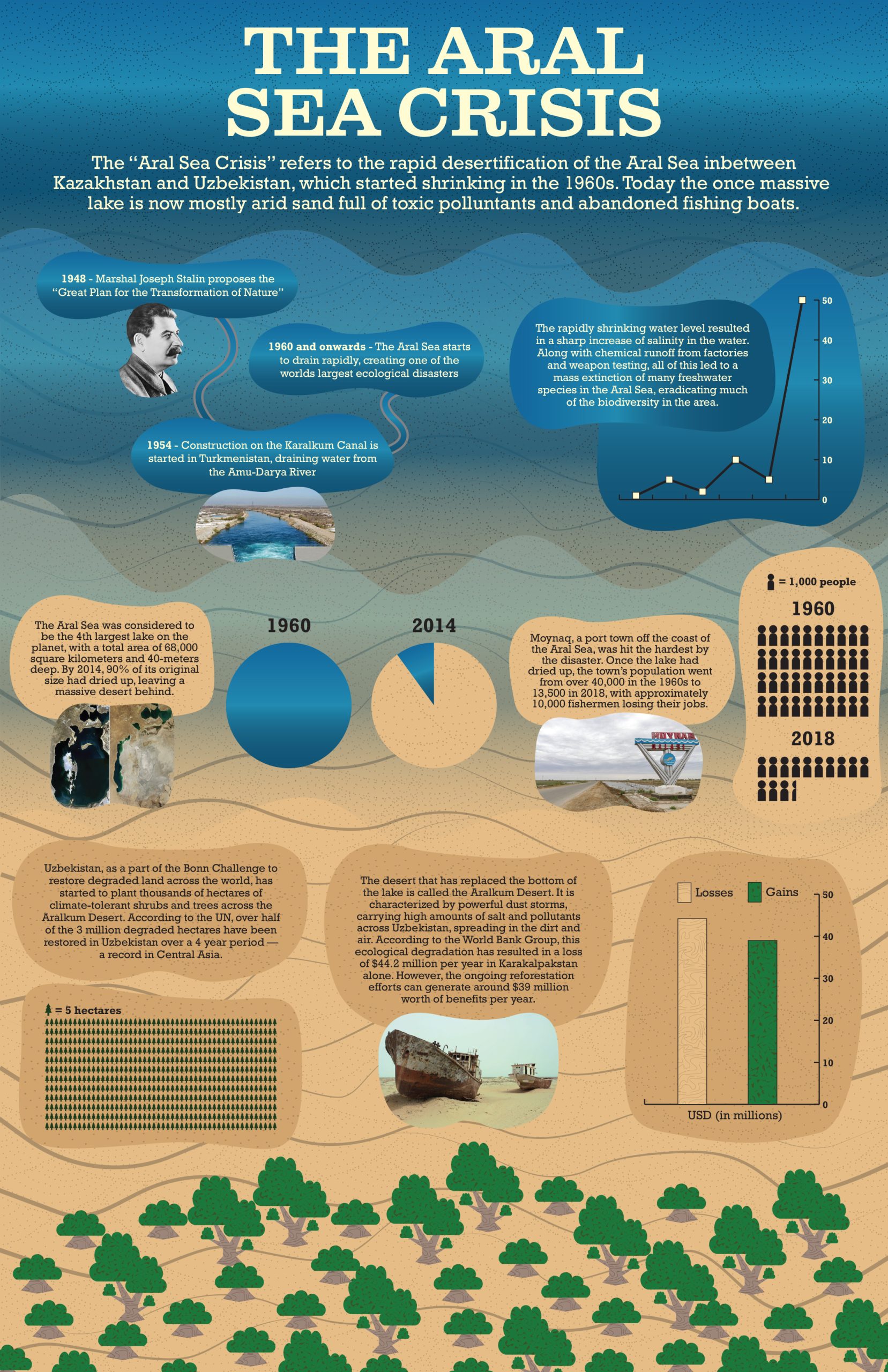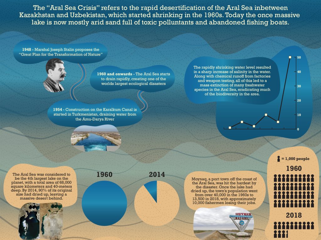 “We were given a list of historical topics, and we had to choose one to base an informational graphic on,” Osbourne wrote. “For my infographic, I chose the Aral Sea Disaster, as I wanted to raise awareness about the topic to people living in the United States.